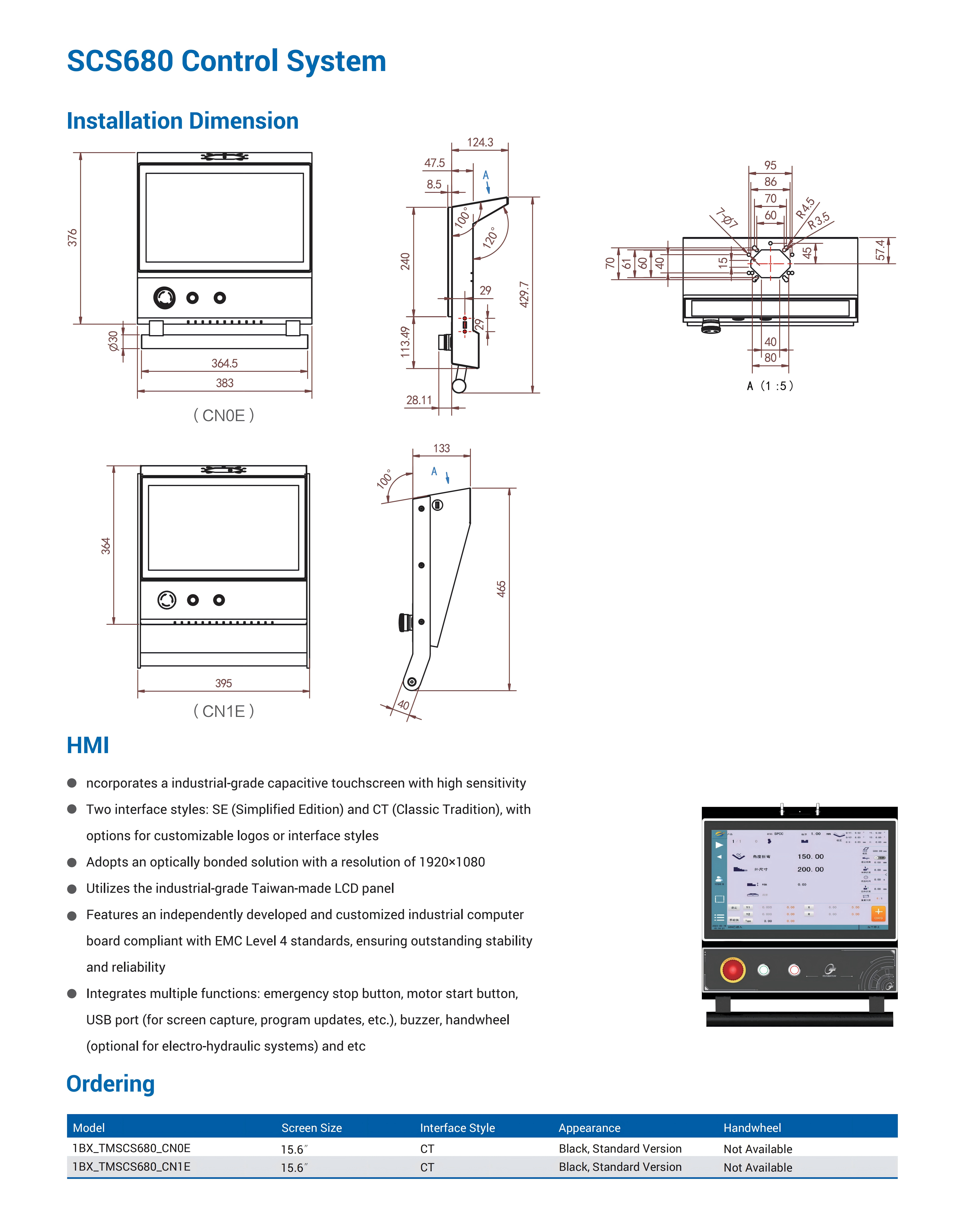 ● Integrates multiple functions: emergency stop button, motor start button, USB port (for screen capture, program updates, etc.), buzzer, handwheel (optional for electro-hydraulic systems) and etc.