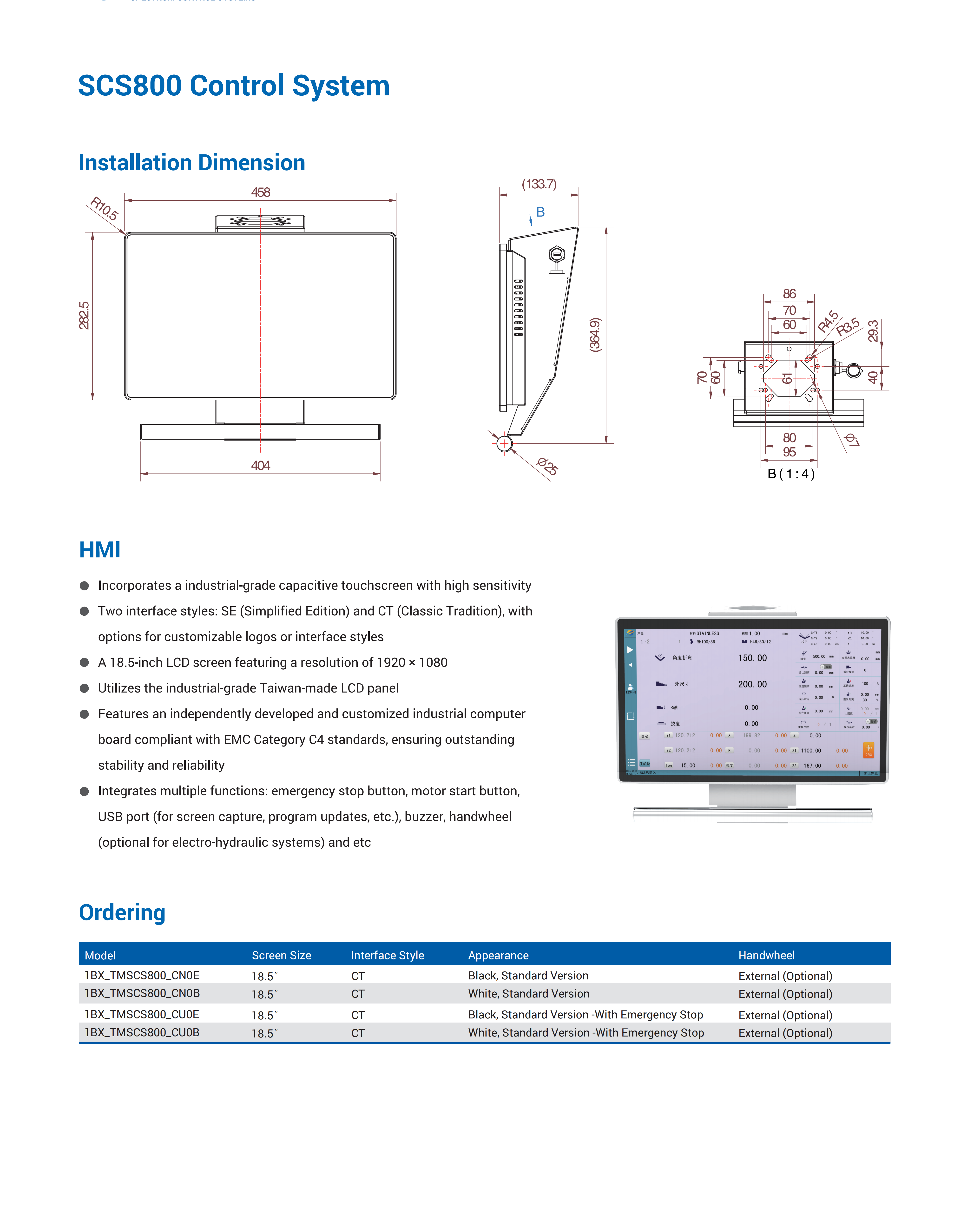 ● Integrates multiple functions: emergency stop button, motor start button, USB port (for screen capture, program updates, etc.), buzzer, handwheel (optional for electro-hydraulic systems) and etc.